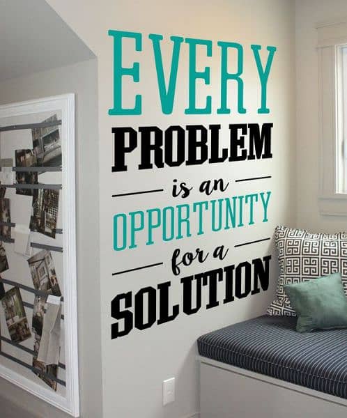 Make a statement with this vibrant teal and black decal. Using the same powerful message about problem-solving, this version uses color-blocking to add a modern pop of personality to a lounge, waiting room, or breakroom.