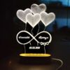 This personalized lamp takes customization a step further by etching an actual photo of a couple onto the acrylic. Above the photo are 3D-style heart balloons, and below is an infinity symbol featuring the names “Seda” and “Ahmet.” The deep red illumination adds a passionate and dramatic flair to the room.